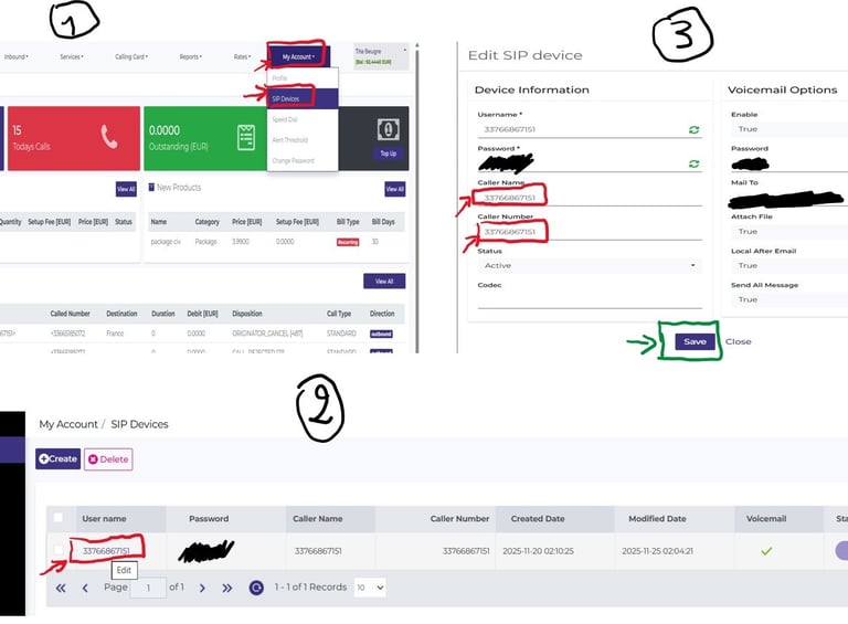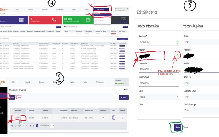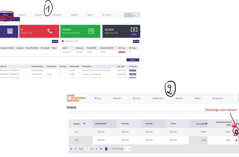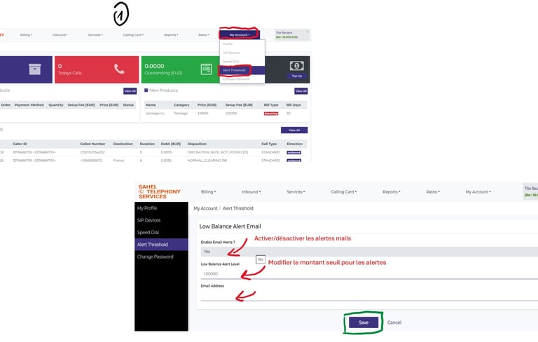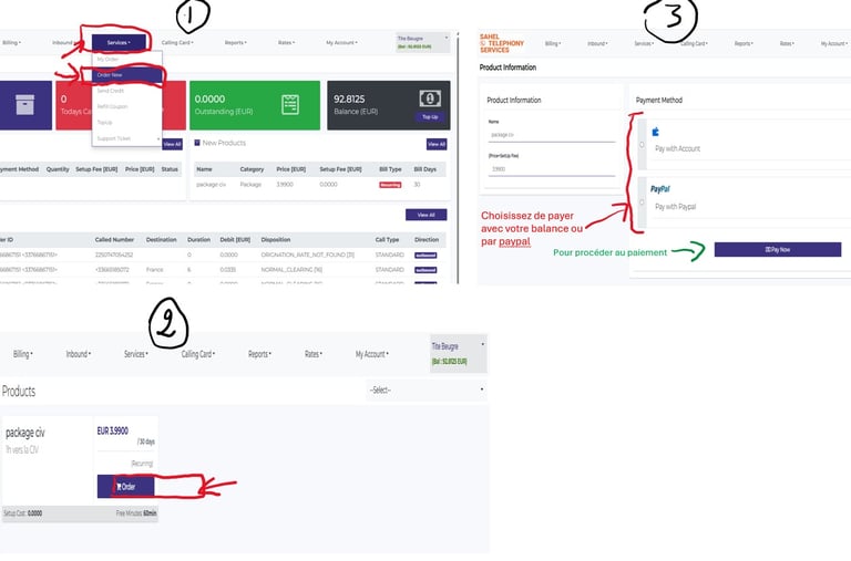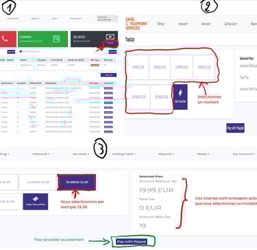 Le crédit est le montant de votre balance. Ce montant sert directement à passer des appels et à acheter d'autres services comme un pack